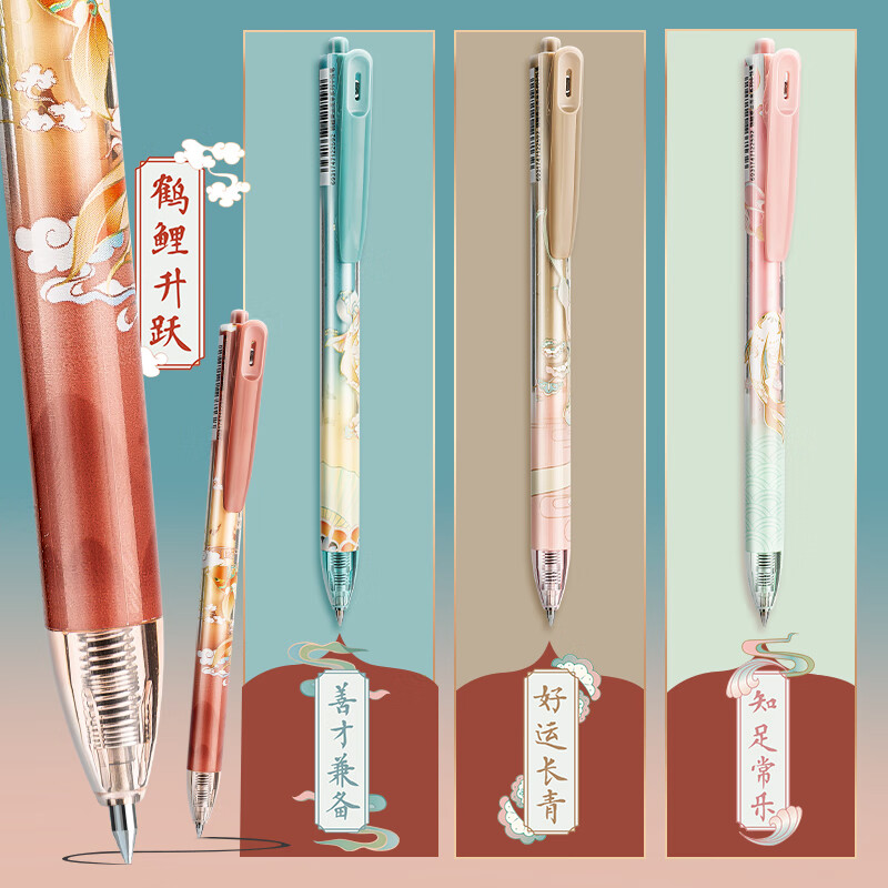 晨光(M&G) AGPJ5504 书写用笔类用具 按动子弹头签字笔 锦鲤系列 4支/盒0.5mm黑色