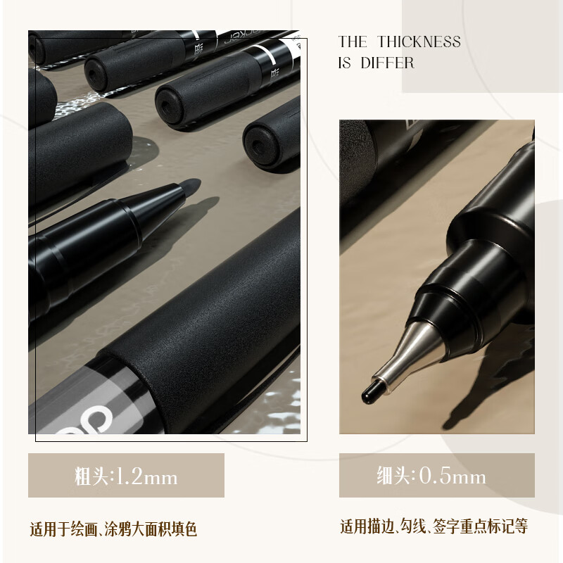 得力 粗细双头物流记号笔 办公会议签字笔标记马克笔油性笔 儿童学生勾线笔12支/盒 S831