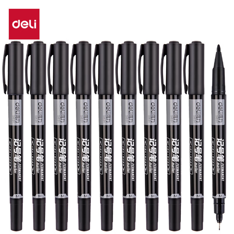 得力 粗细双头物流记号笔 办公会议签字笔标记马克笔油性笔 儿童学生勾线笔12支/盒 S831
