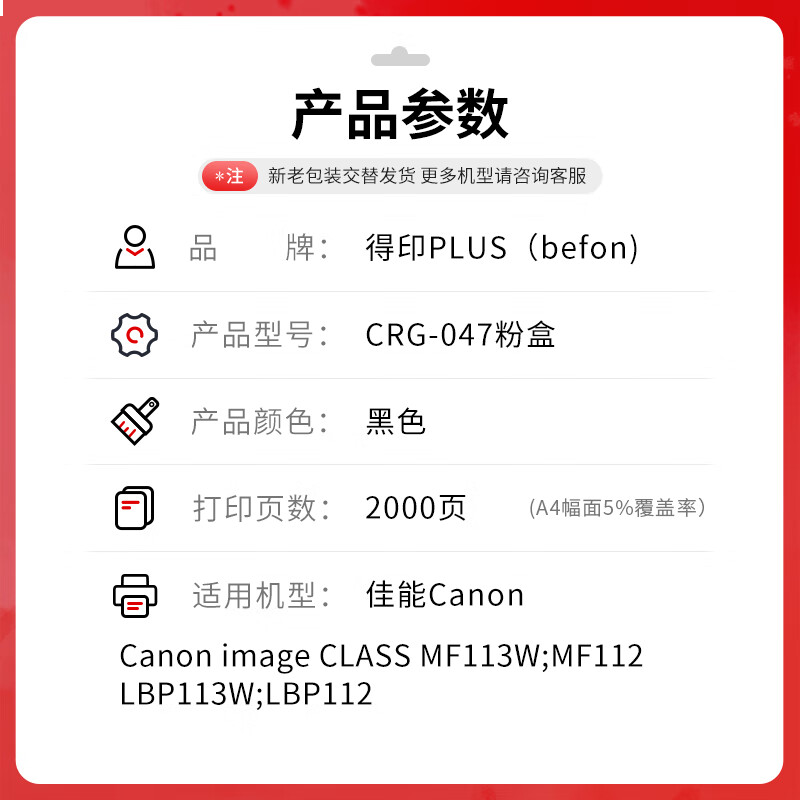 得印PLUS版CRG047适佳能icMF113w粉盒LBP112打印机墨粉盒MF112墨盒CRG04