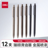 得力(deli)【顺滑之星】乐素臻顺滑中性笔签字笔 0.5mm子弹头按动笔水笔 金属喷漆 黑色 12支/盒A12