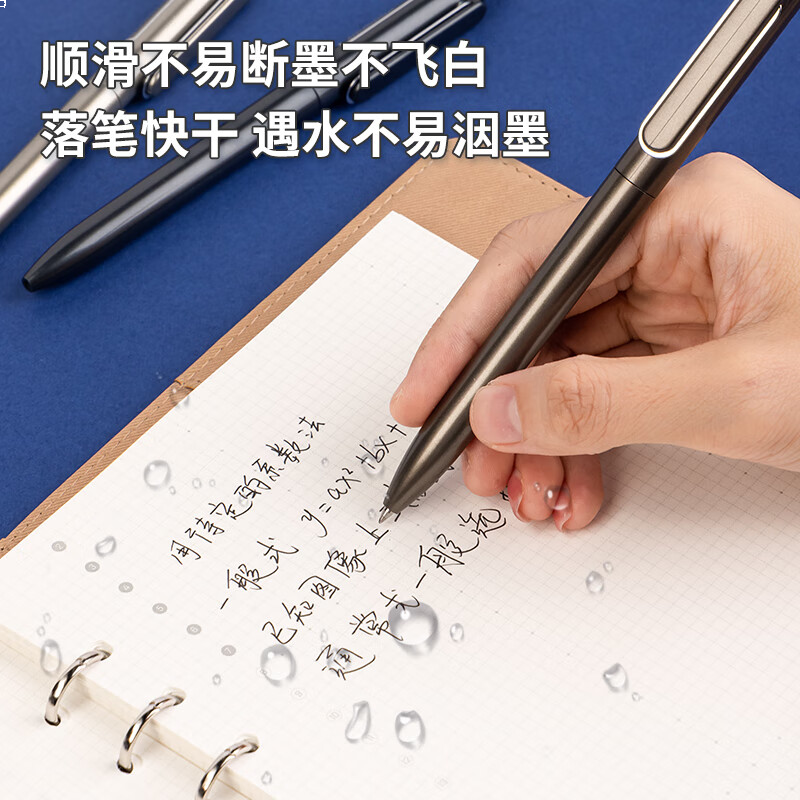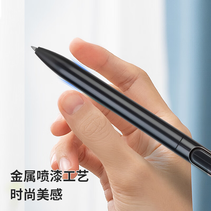 得力(deli)【顺滑之星】乐素臻顺滑中性笔签字笔 0.5mm子弹头按动笔水笔 金属喷漆 黑色 12支/盒A12