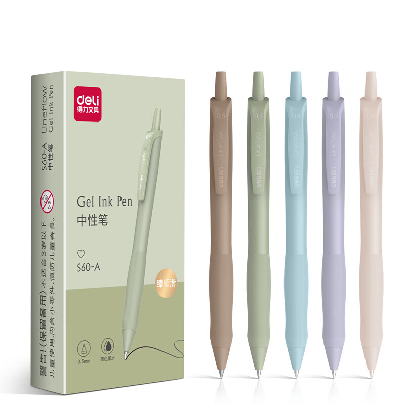 得力(deli)臻顺滑弧度收口中性笔0.5mm子弹头黑色12支/盒S60-A