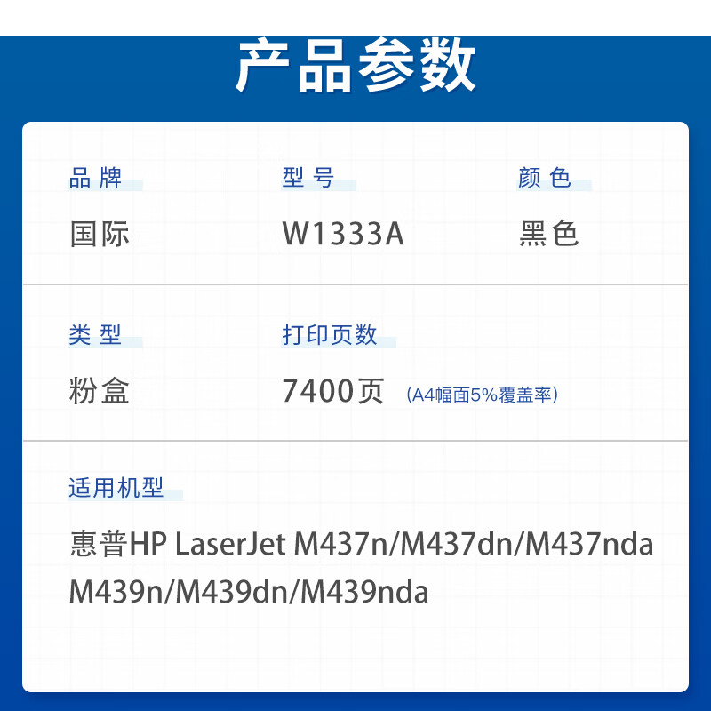 首页/ 国际 W1333A 硒鼓 黑色粉盒 标准版1支(7400页)/