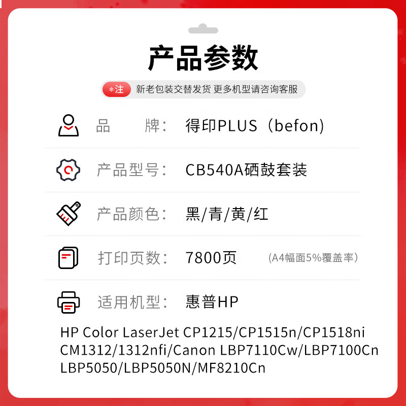 首页/ 得印PLUS版适惠普cb540a硒鼓HP125a墨盒CP1215碳粉1525墨粉CM1312打印机【/