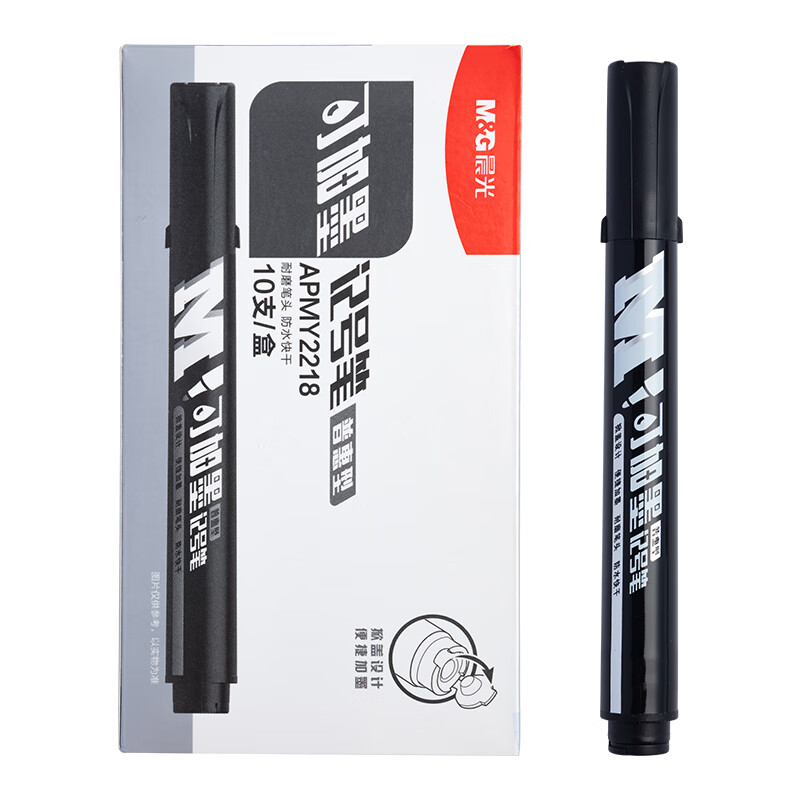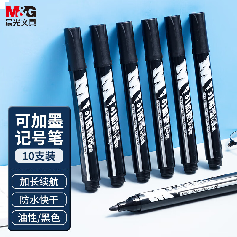 首页/ 晨光(M&G) APMY2218A 书写用笔类用具 粗头记号笔可加墨 10支/盒 黑色/