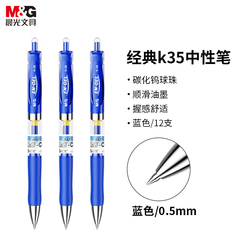首页/ 晨光(M&G) K35 书写用笔类用具 按动中性笔学生0.5签字笔子弹头 蓝色 12支/盒/