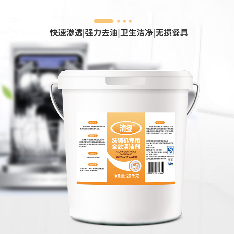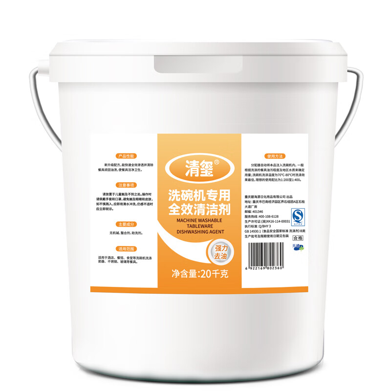 清玺 洗碗机用全效清洁剂 酒店食堂大桶装商用餐具清洗剂洗碗液 20kg 1桶