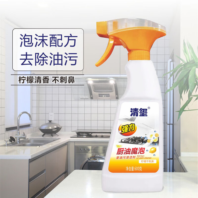 清玺 重油污强洁剂厨房强力去重油抽油烟机炉灶清洁剂去污除垢除油剂 600g 1瓶 泡沫油污净