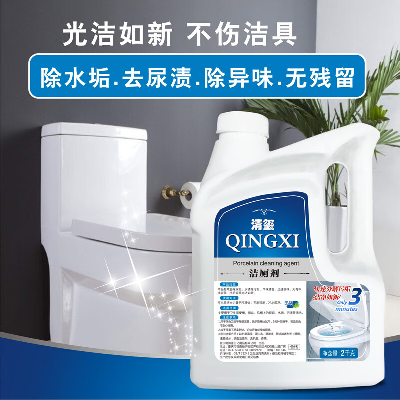 首页/ 清玺 马桶清洁剂 强力洁厕灵 洗厕所马桶便池强效去污去垢除异味 强力洁厕灵 2kg 2瓶 /