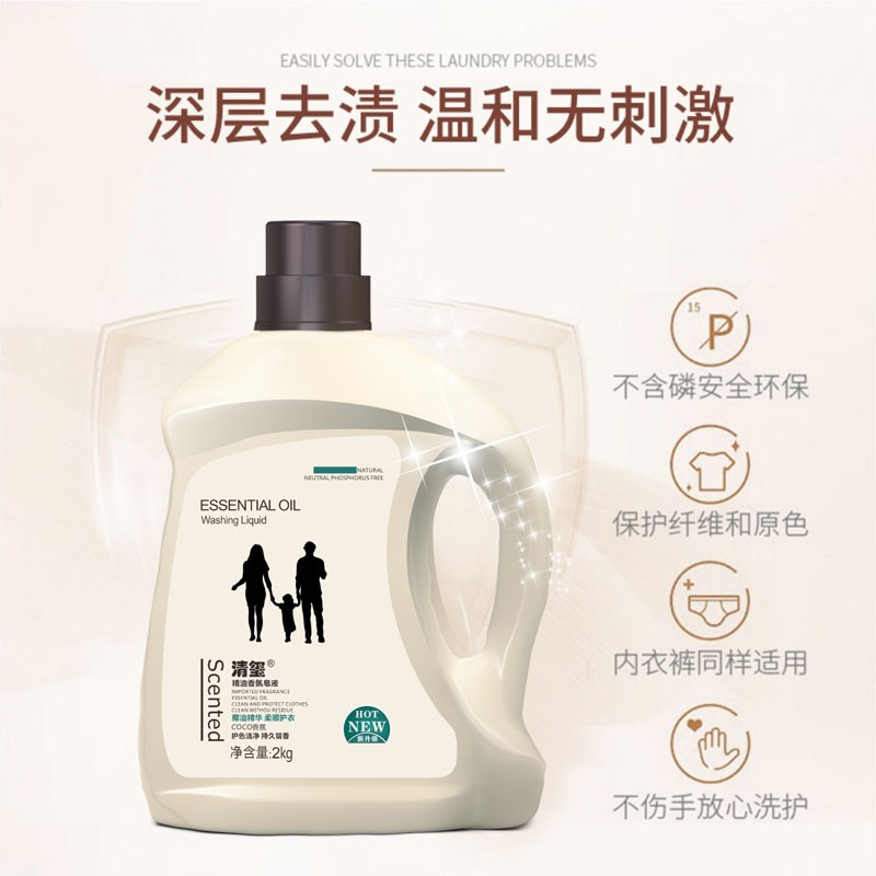 清玺 精油香氛皂液深层去污温和低泡易漂香味持久婴幼儿衣物内衣清洁 清玺精油皂液 2kg 2瓶
