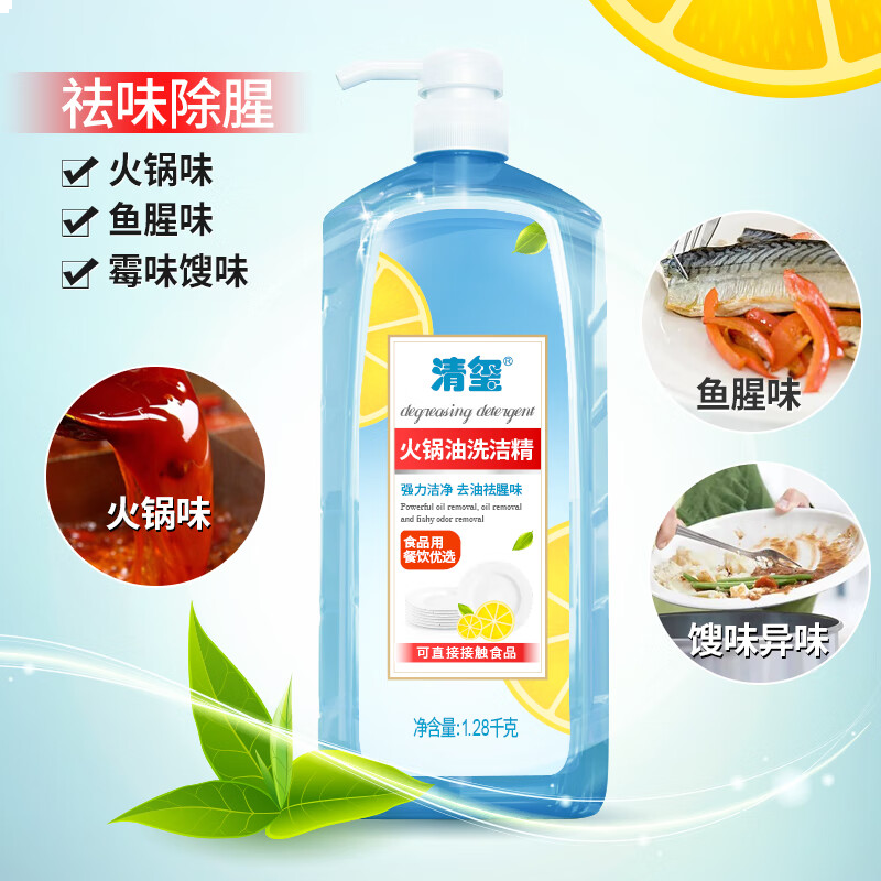 清玺 洗洁精1.5kg小苏打去油除味果蔬清洗剂洗碗餐具食品用级洗涤灵 1.28kg 1瓶