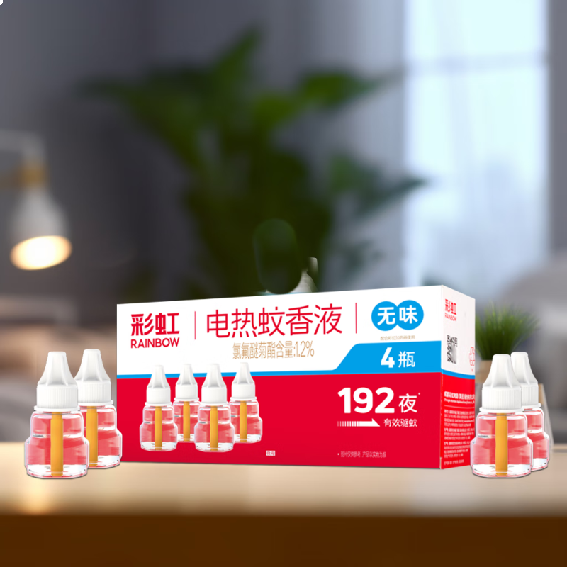 首页/ 彩虹电热蚊香液四瓶装(无味)(5166)/盒/