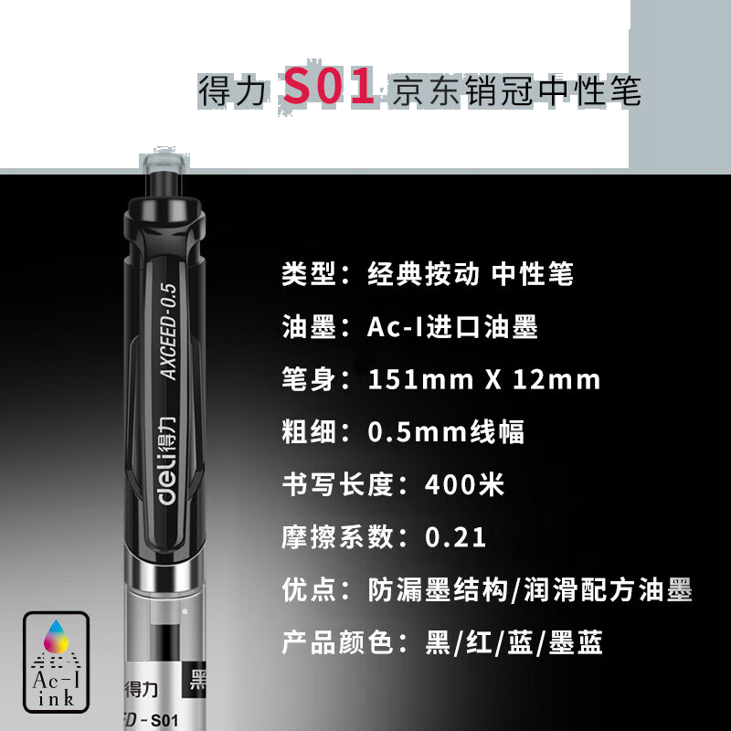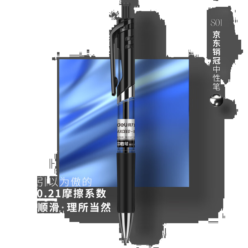 首页/ 得力(deli)S01中性笔签字笔 0.5mm经典办公按动笔水笔 黑色 12支/盒/