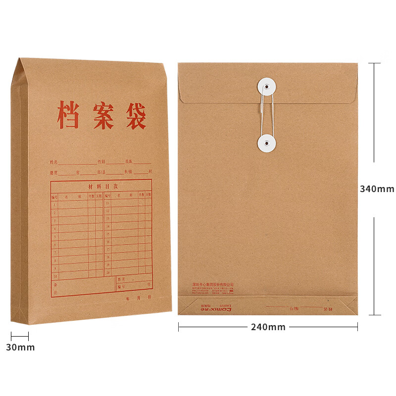 首页/ 齐心50只装175g竖式牛皮纸档案袋侧款3cm文件袋/资料袋标书合同文件票据袋 EA6023/