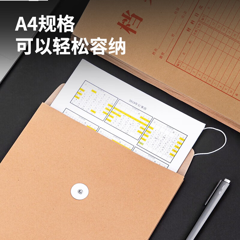 齐心50只装175g竖式牛皮纸档案袋侧款3cm文件袋/资料袋标书合同文件票据袋 EA6023