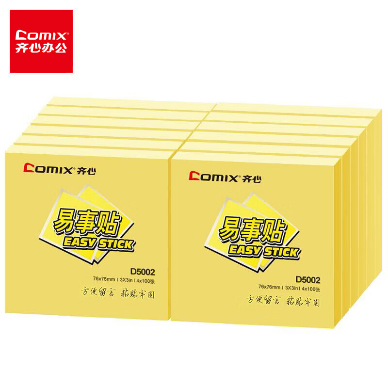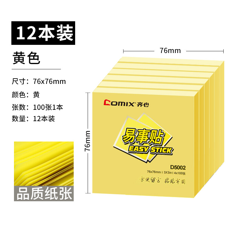 齐心(COMIX)【全网低价】12本装黄色便利贴/便签纸/便签本/便签贴/易事贴(76x76mm) 办公文具 D5002