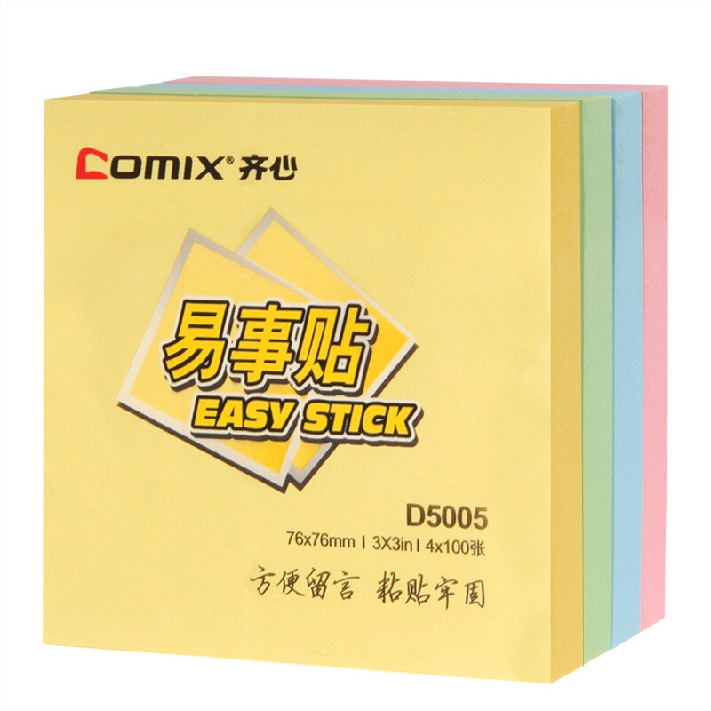 齐心(Comix)400张强力系列便利贴/便签纸/便签本/易事贴/百事贴四色开学文具 76X76mm 4本装 D5005