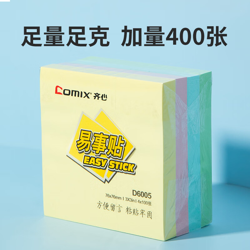 齐心(COMIX)高粘便利贴4色/400张/76x76mm便签纸贴纸/记事贴留言本 D6005