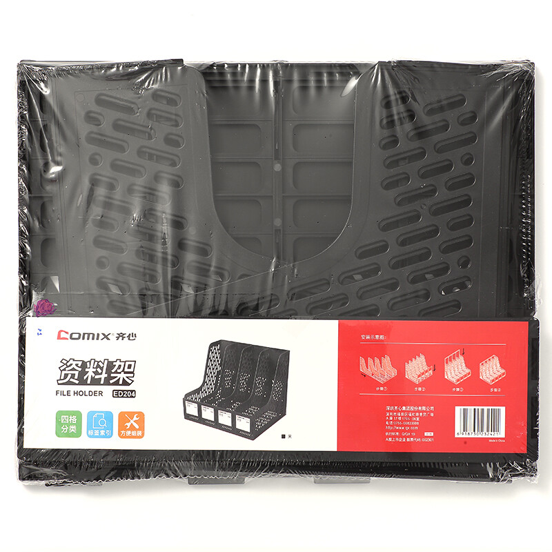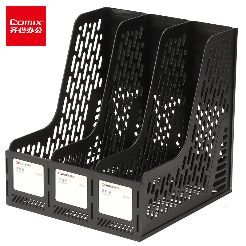 齐心三联镂空桌面文件框 三栏带标签稳固文件栏/文件筐/资料框245*255*265 黑ED203