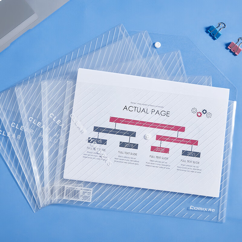 齐心(Comix) 10只装加厚条纹A4透明按扣袋/文件袋/收纳袋 透明 办公文具EA330