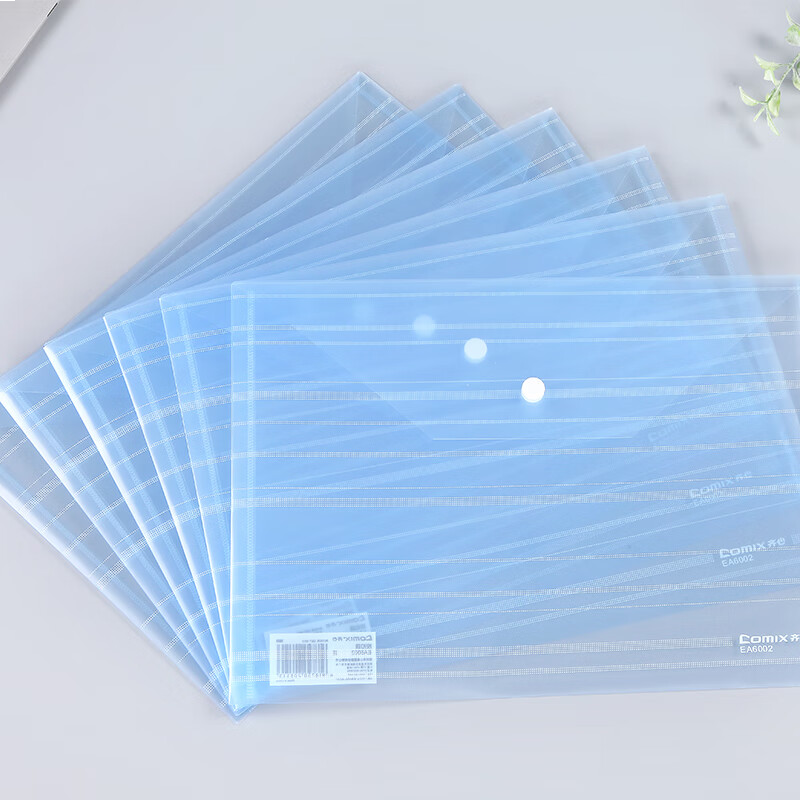 齐心(Comix) 20个装 A4透明横纹按扣文件袋 公文袋 资料袋 档案袋 蓝色 EA6002