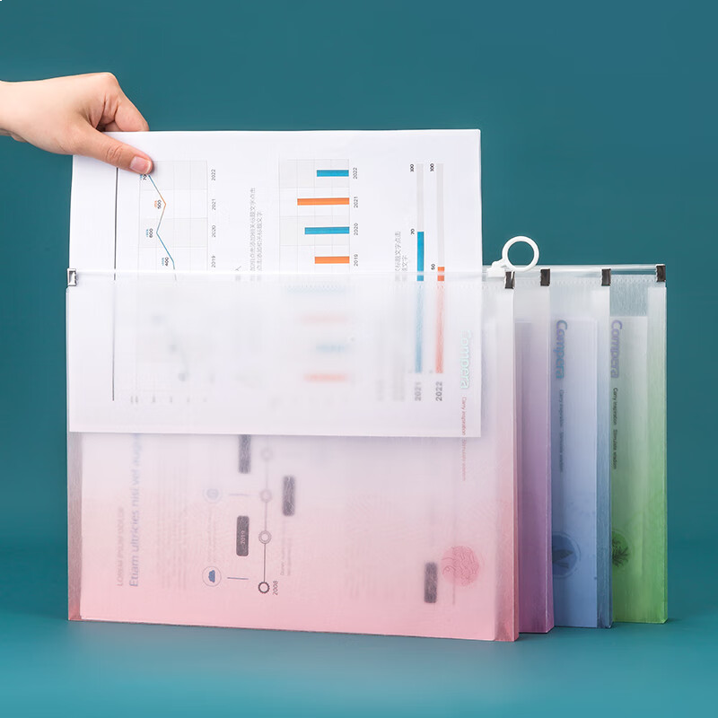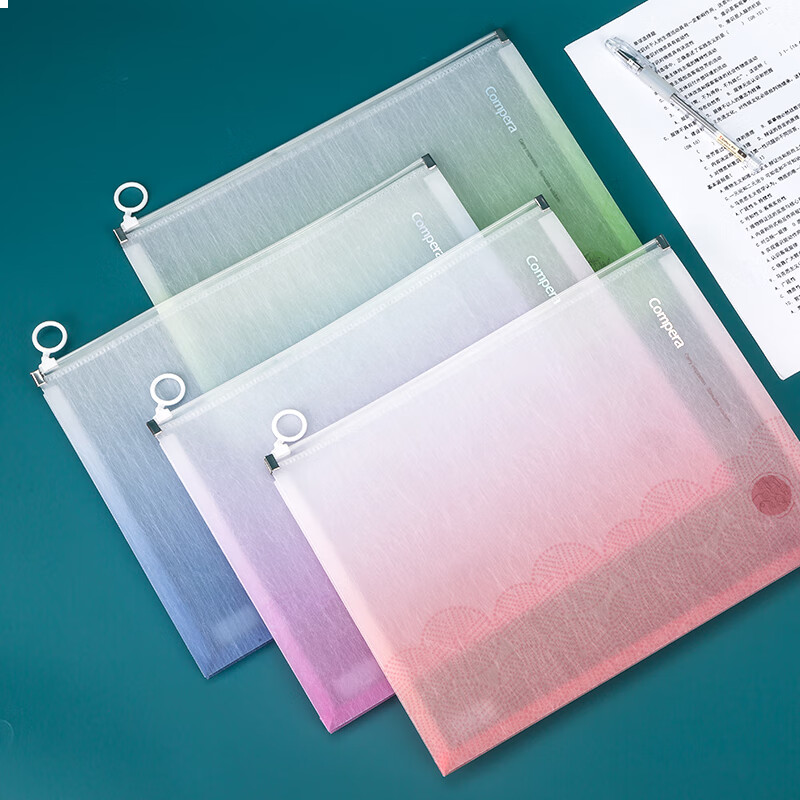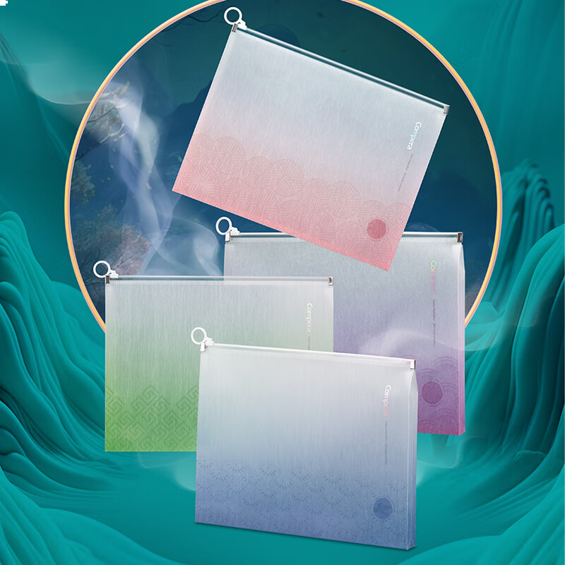 齐心(COMIX)4只A4文件袋 国风蚕丝纹拉链袋试卷收纳文件套资料防水档案袋 CPAS0023-4