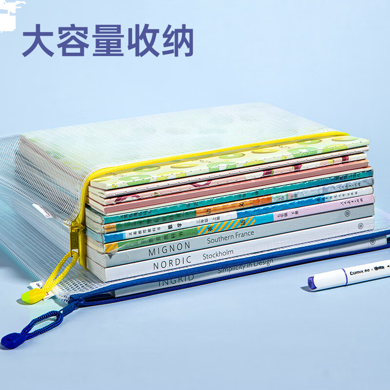 齐心(COMIX)10只A4文件袋透明拉链袋办公资料袋科目分类试卷票据收纳拉边袋网格塑料EA1054