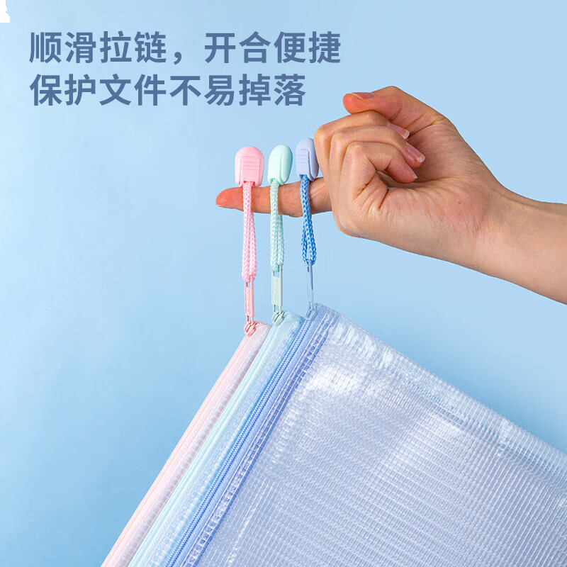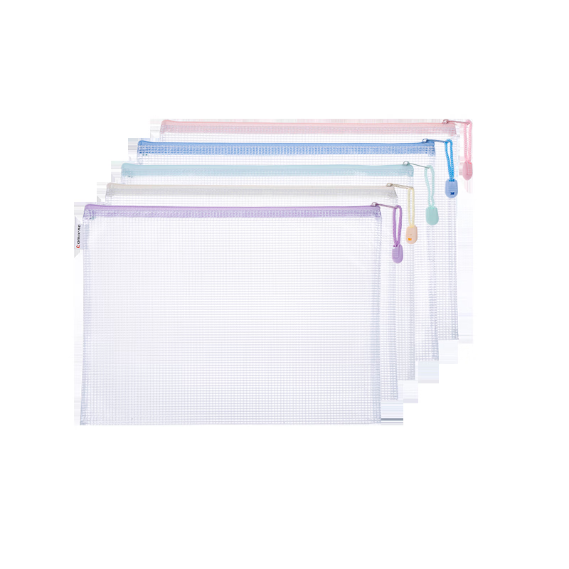 齐心(COMIX)5只A4防水网格拉链袋 文件袋小学生科目分类袋 马卡龙色系混色 EA5014-5