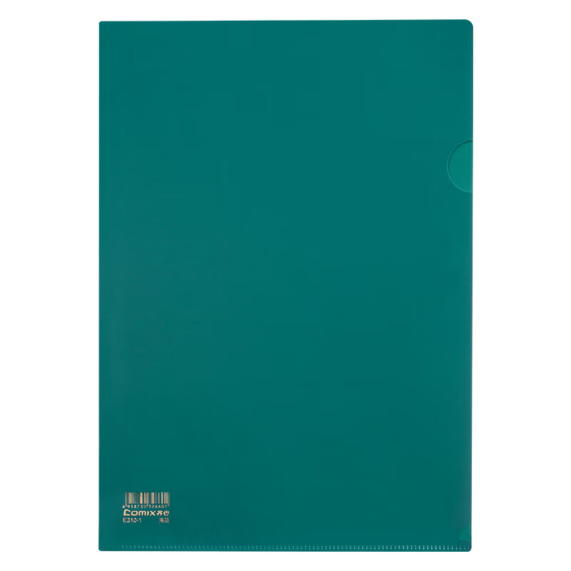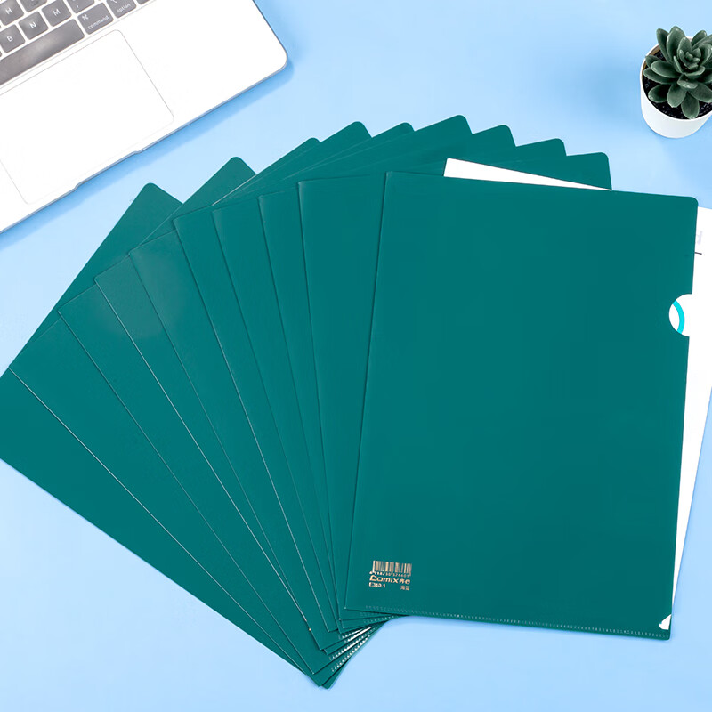 齐心100只A4文件套 文件夹L型文件袋 单片两页式票据收纳GRS环保认证 E310-1森绿