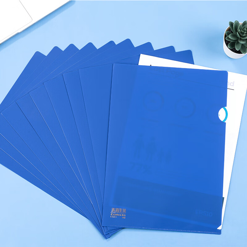 齐心100只A4文件套 文件夹L型文件袋 单片两页式票据收纳GRS环保认证 E310-1海蓝