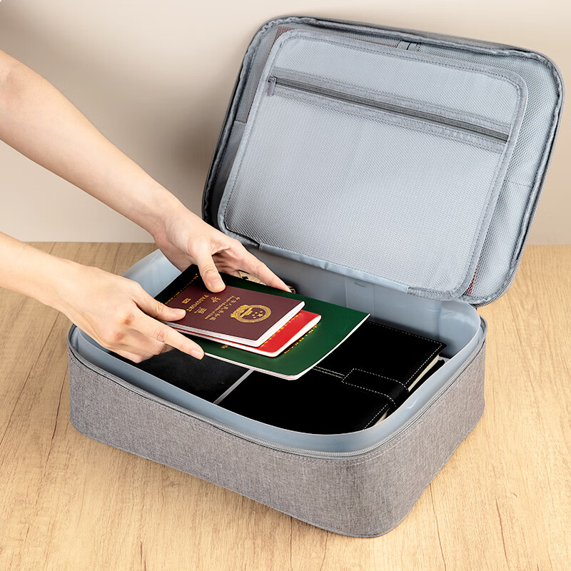 齐心 家用大容量多功能文件袋文件包 防水防尘证件收纳包 事务包收纳箱 灰色DS-323
