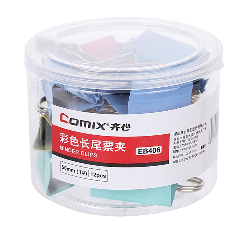 齐心 12只50mm长尾夹/燕尾夹/票夹 彩色金属夹子1# 12只/筒 办公文具工具EB406