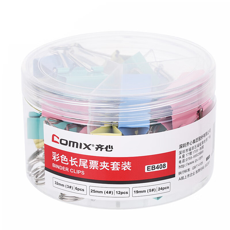 齐心 42只彩色长尾夹/票据燕尾夹子(32mm6只 25mm12只 19mm24只) EB408