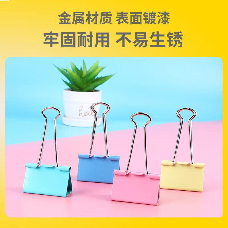 齐心8盒装192只41mm长尾夹大号 彩色金属燕尾夹票据夹子 2#24只/筒EB405