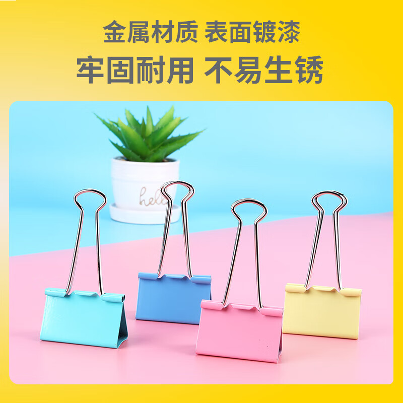 齐心 96只 4盒装32mm长尾夹/燕尾夹/票夹 彩色金属夹子3#24只/筒 EB404