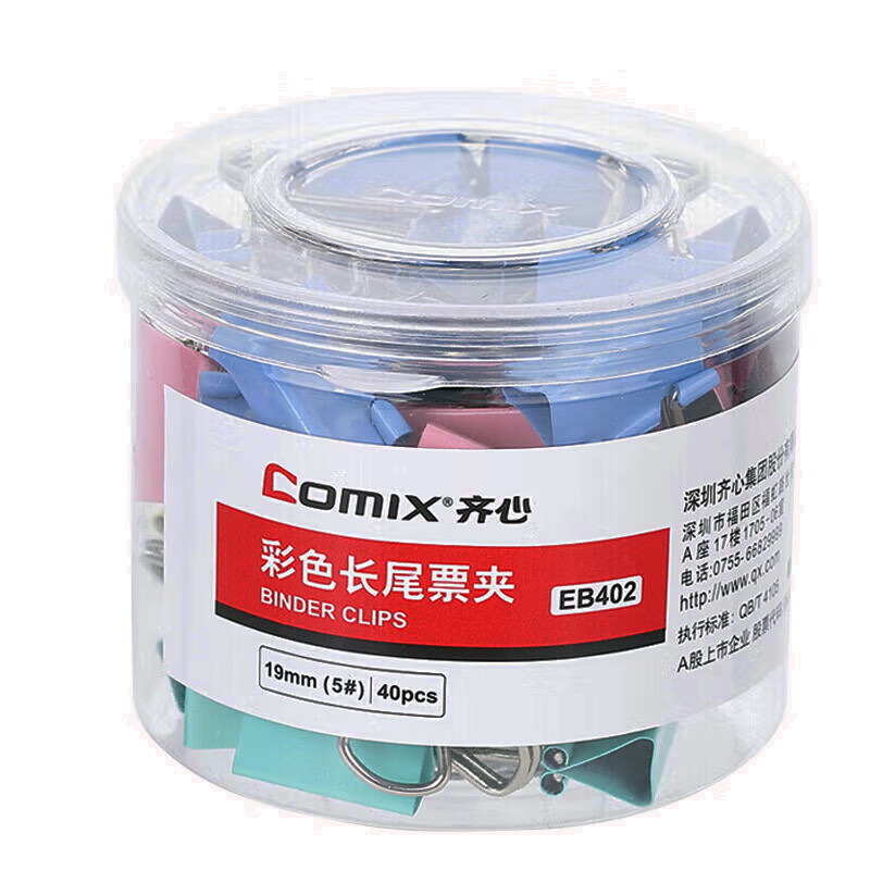 齐心 400只10盒装19mm长尾夹/燕尾夹/票夹 彩色金属夹子5#40只/筒 EB402