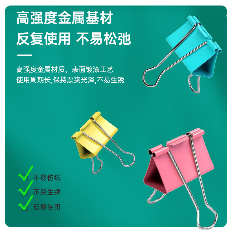 齐心 60只15mm彩色长尾夹票夹 6#小号金属燕尾夹票据文件夹办公 60只/筒 EB8556ES