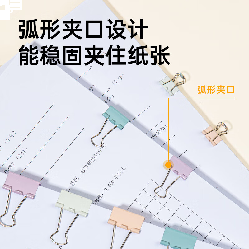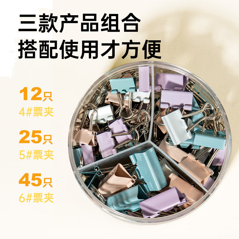 齐心82只莫兰迪色长尾夹票夹/燕尾夹金属 25mm12只 19mm25只 15mm45只EB8521A