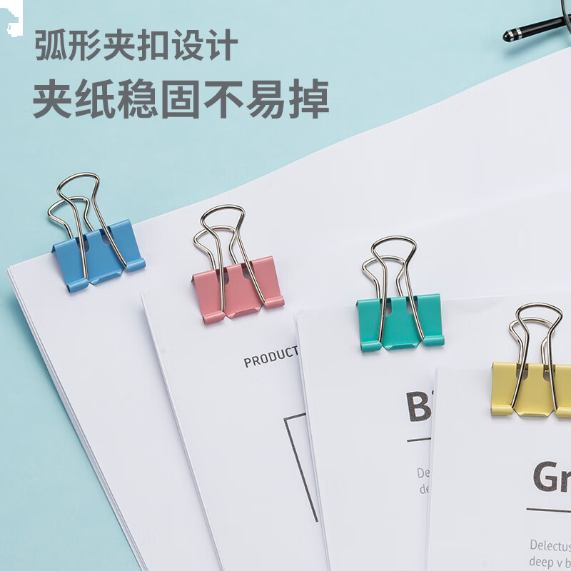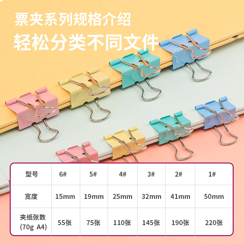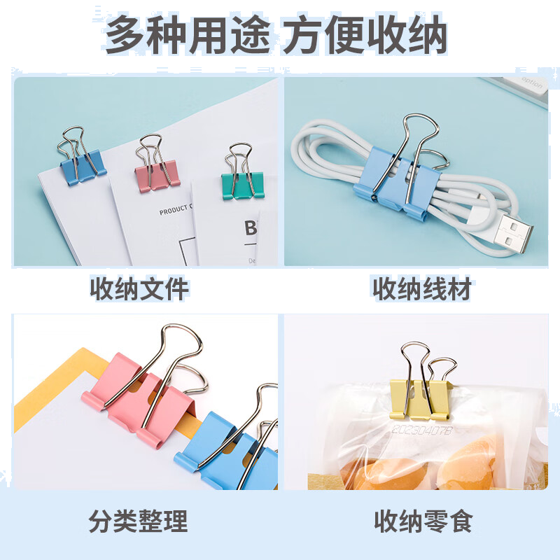 齐心 大号12只50mm省力彩色长尾夹票夹 1#长尾夹燕尾夹票据夹子 B4061