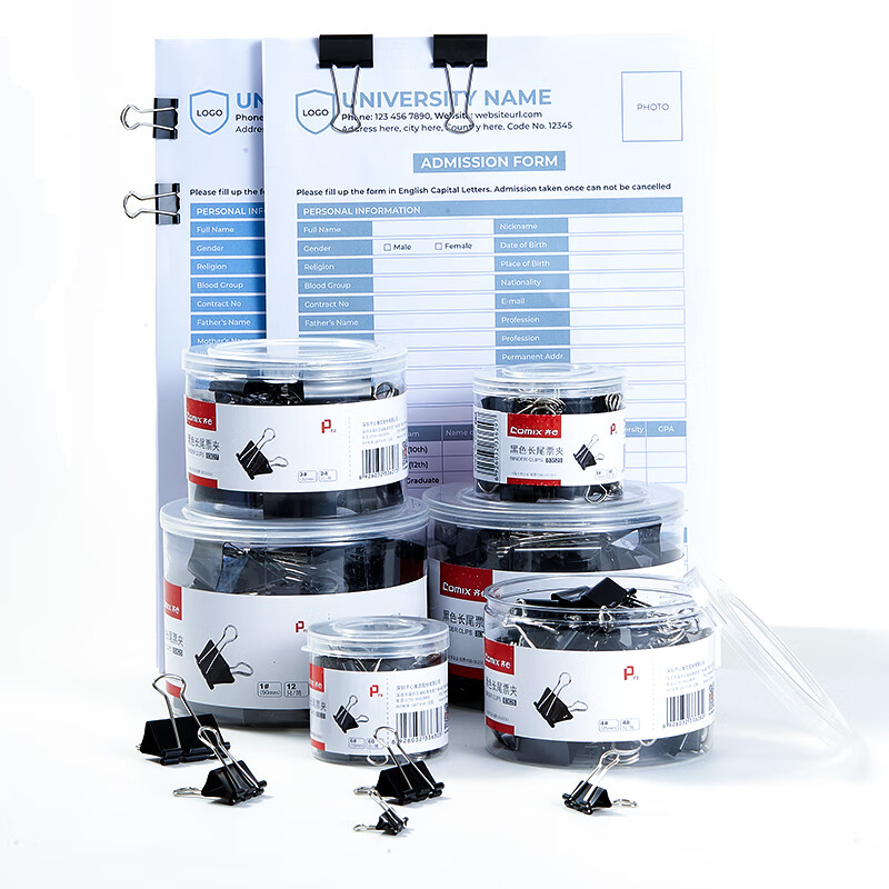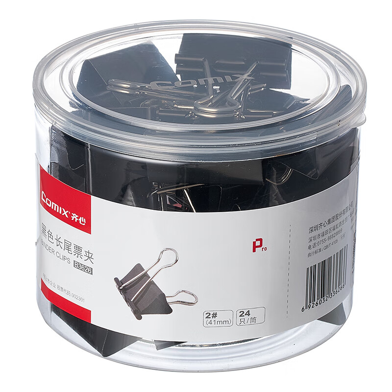 齐心(Comix)长尾夹/燕尾夹/票夹 黑色金属夹子 2#41mm 24只/筒 B3626