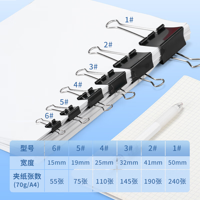 齐心(Comix)长尾夹/燕尾夹/票夹 黑色金属夹子 6#15mm 60只/筒 B3630