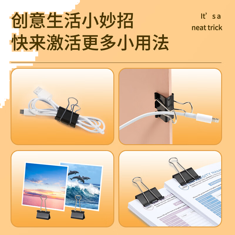 齐心(Comix)黑色长尾夹票夹 大号41mm金属燕尾夹票据夹子 12只/盒 B3606