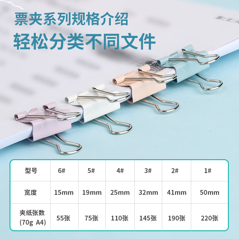 齐心(Comix)省力长尾夹24只 41mm文件文具夹子2#燕尾夹莫兰迪彩色 B4072