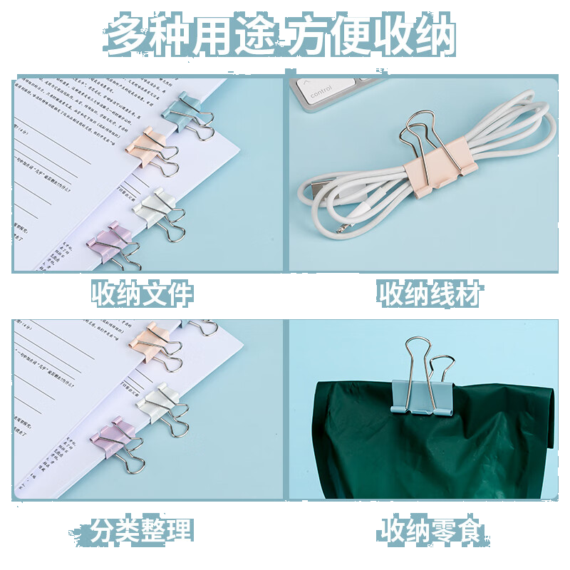 齐心(Comix)省力长尾夹24只 32mm办公文具夹子3#燕尾夹莫兰迪彩色 B4073