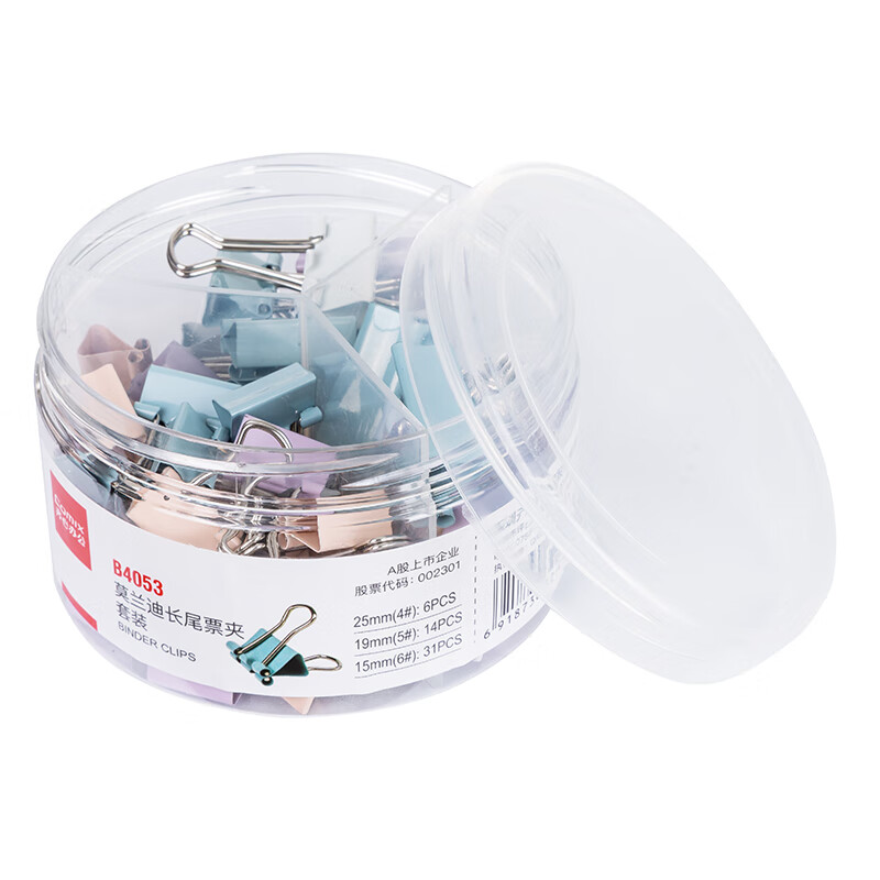 齐心51只莫兰迪多规格长尾票夹套装 (25mm6只 19mm14只 15mm31只)/筒 B4053