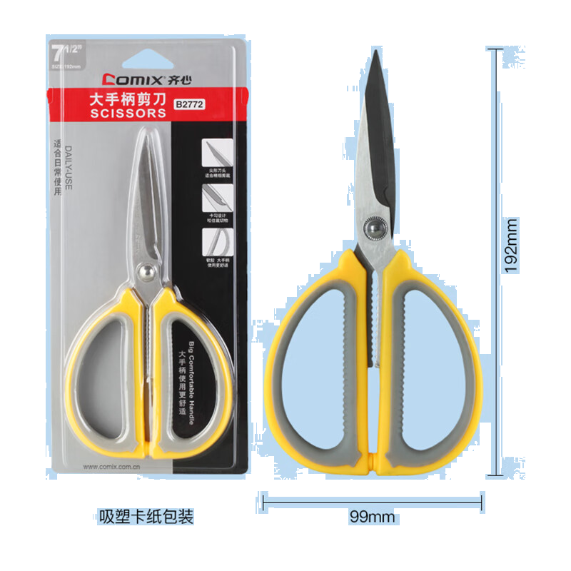 齐心(Comix)剪刀家用 办公生活剪子 剪纸刀 省力舒适结构 办公用品 192mm B2772
