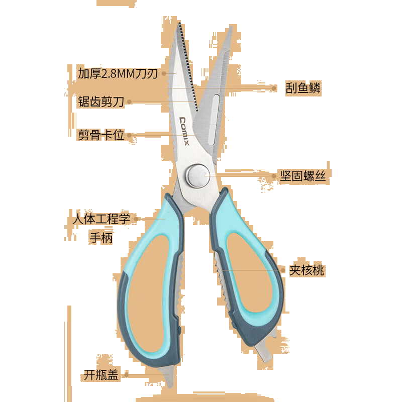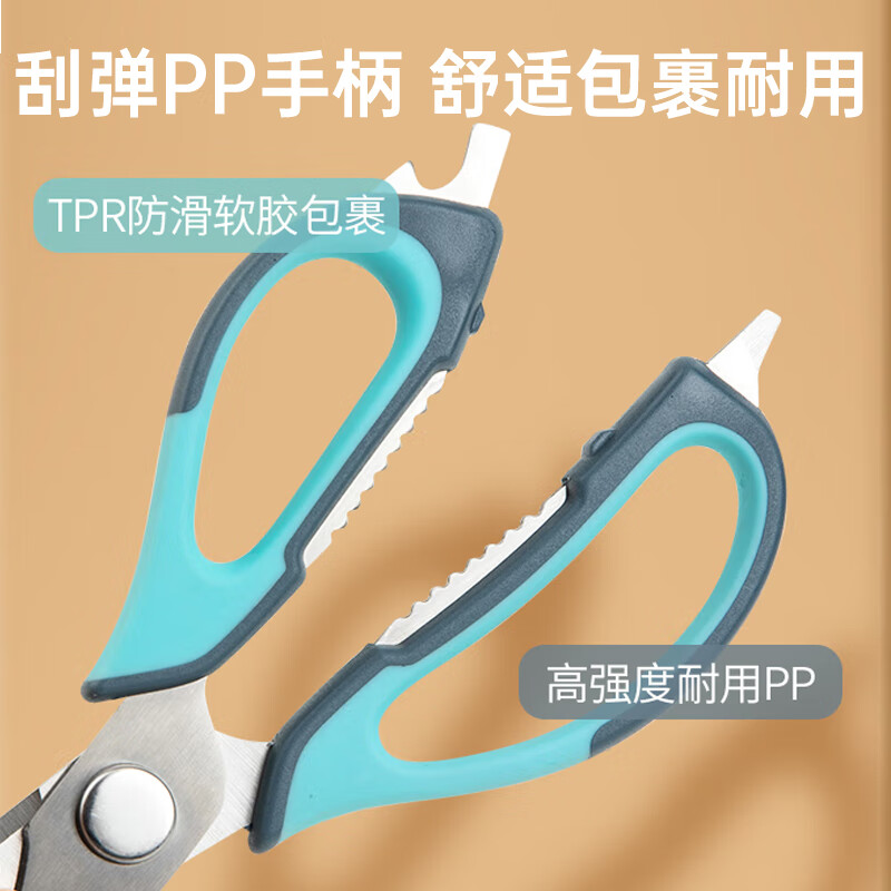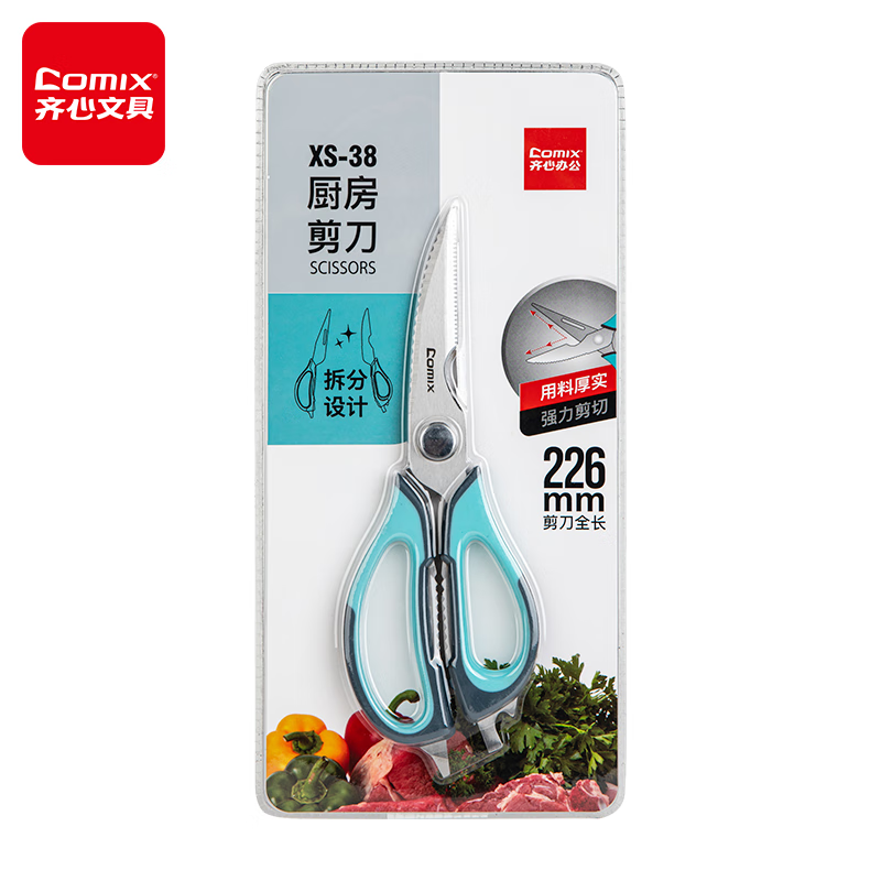 齐心(COMIX)厨房剪刀 食品级厨房用剪 多功能辅食剪强力鸡骨剪烤肉不锈钢大号剪刀XS-38蓝