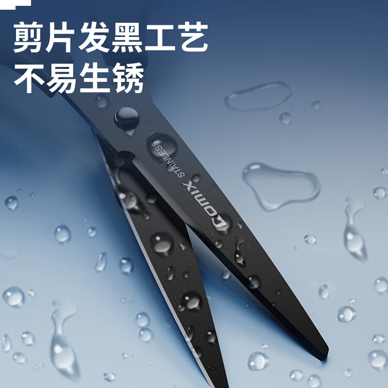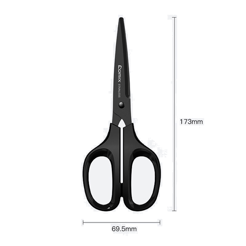 齐心173mm黑刃防锈剪刀 不锈钢中号剪子 省力设计家用手工DIY工具 黑色EB205