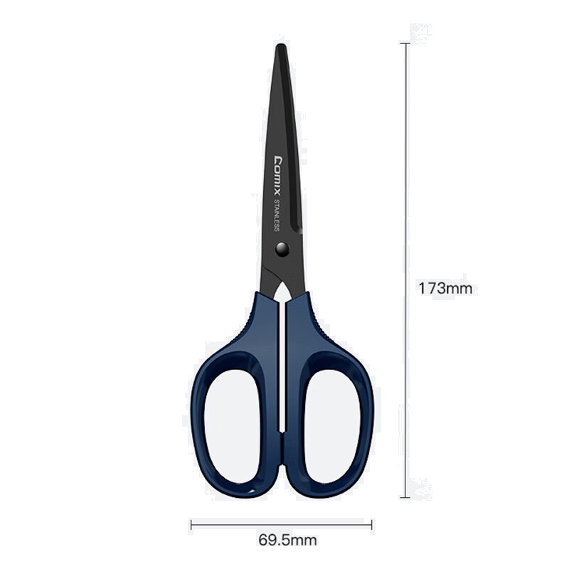 齐心(COMIX)173mm黑刃防锈剪刀 不锈钢中号剪子 省力设计办公用品家用手工DIY工具 墨蓝EB205